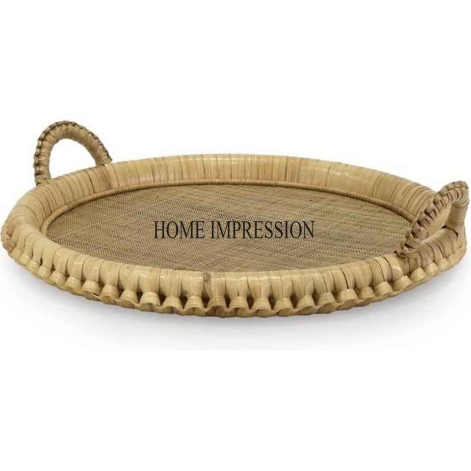 โต๊ะรับประทานอาหารของโรงแรมและร้านอาหารถาดหวายทรงกลมสำหรับการตกแต่งสำหรับเสิร์ฟช็อกโกแลตและภาชนะเสิร์ฟ