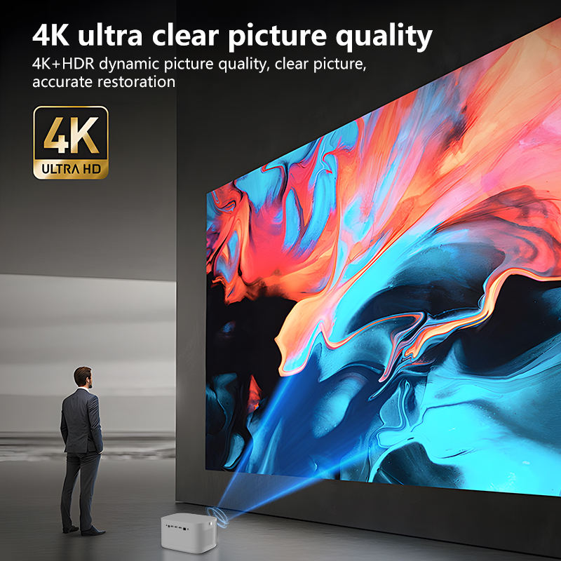 โปรเจกเตอร์ขนาดเล็ก4K แบบพกพาแอนดรอยด์9 WIFI BT โรงหนังกลางแจ้ง DLP โฮมเธียเตอร์ HD