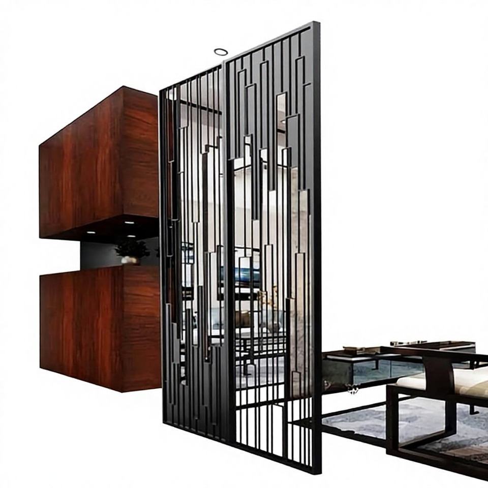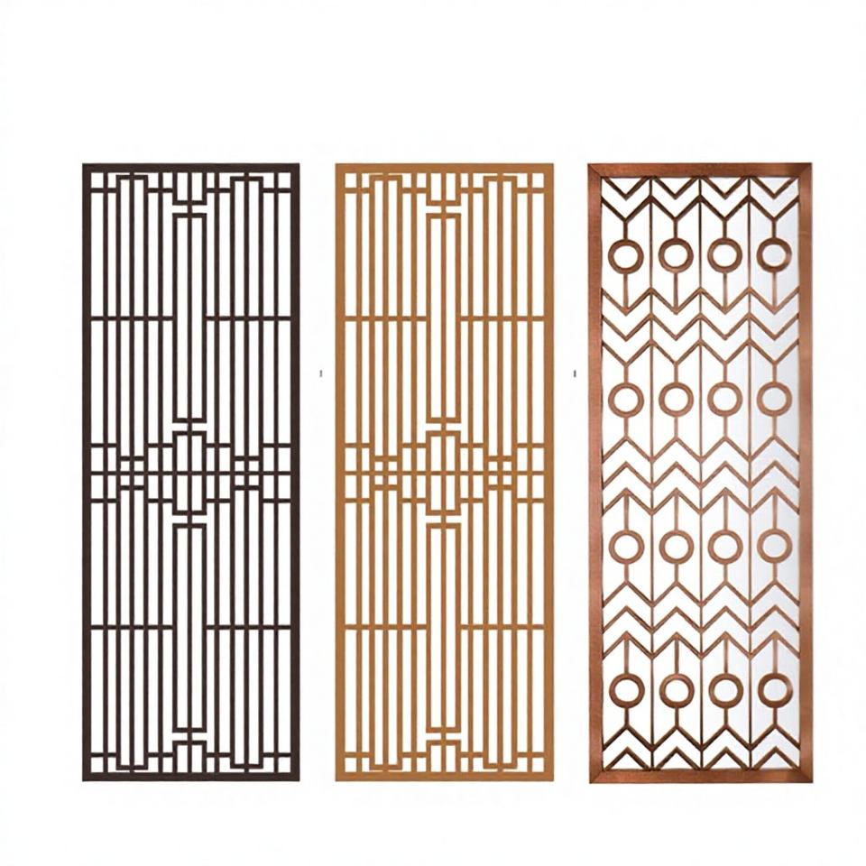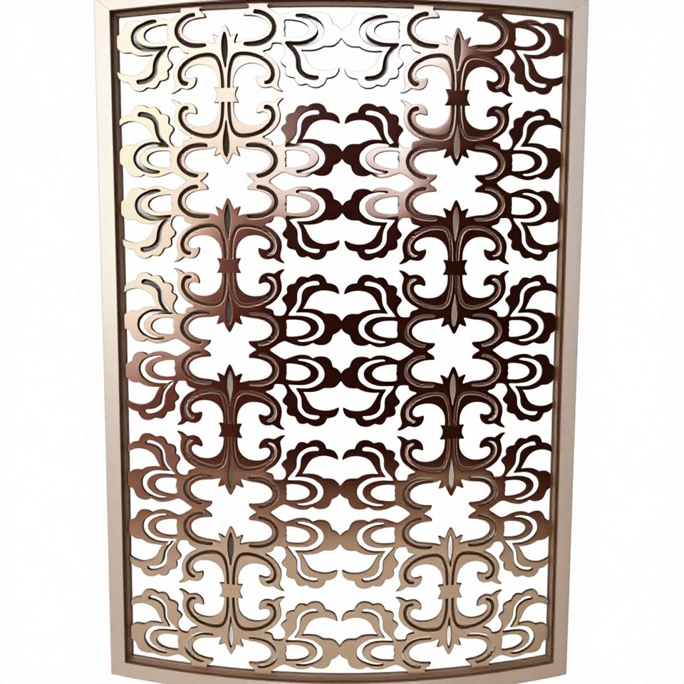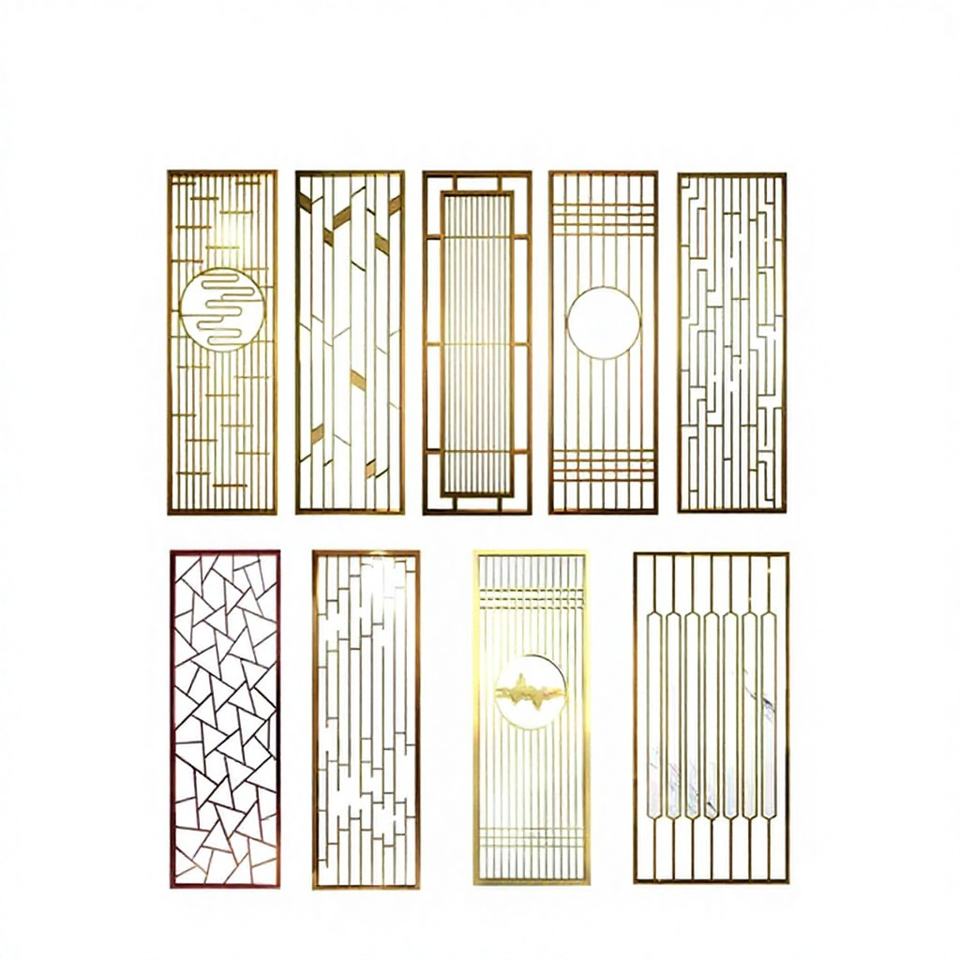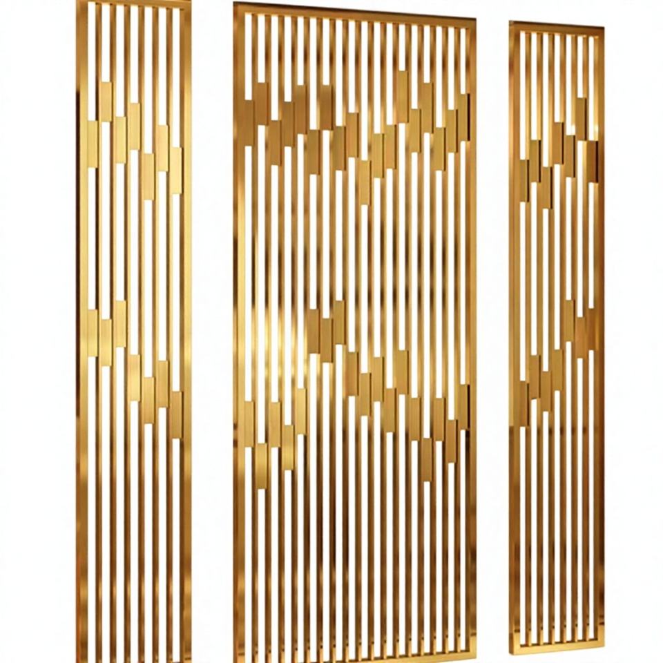 HOTSALEMETAL ฉากกั้นสแตนเลสสตีลตัดด้วยเลเซอร์ สีทองขัดเงา สำหรับกรอบฉากกั้น ดีไซน์ยืดหดได้ สไตล์อาร์ตเดโค ติดตั้งง่าย