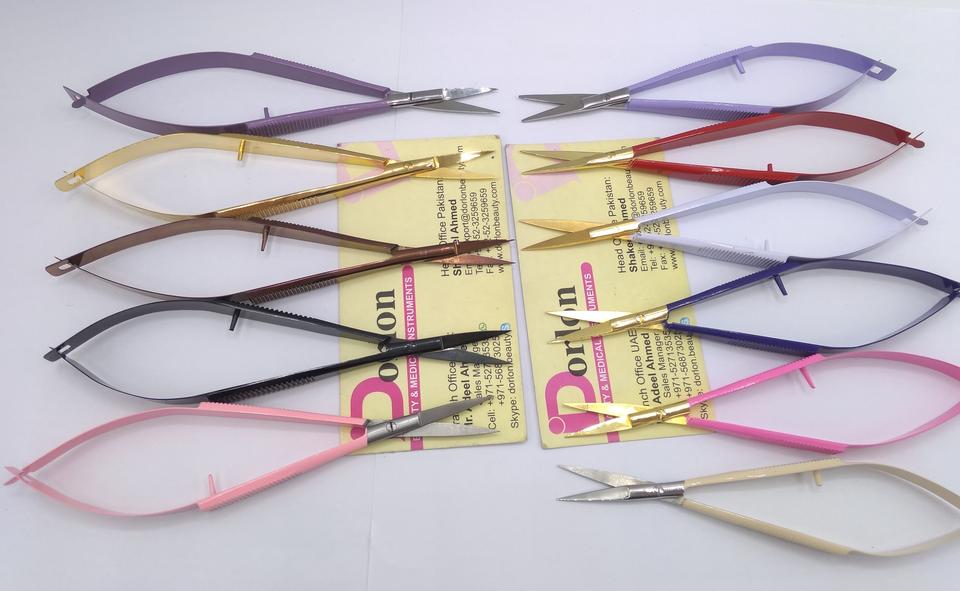 กรรไกรสปริงเคลือบคิ้วสีพลาสม่าสีดำสินค้าสแตนเลสแพ็กเกจความงามแบบกำหนดโลโก้ได้เอง