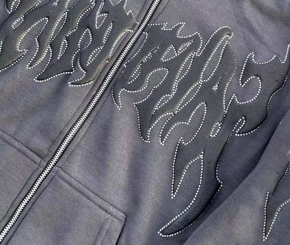 เสื้อฮู้ดดี้สตรีทแวร์แบบมีซิป ดีไซน์สุดฮิต น้ำหนักเบา สำหรับฤดูหนาว ผ้าพิมพ์ลายพัฟ 340gsm แบบ unisex ปรับแต่งได้ ปลายขาบาน มีเชือกผูก