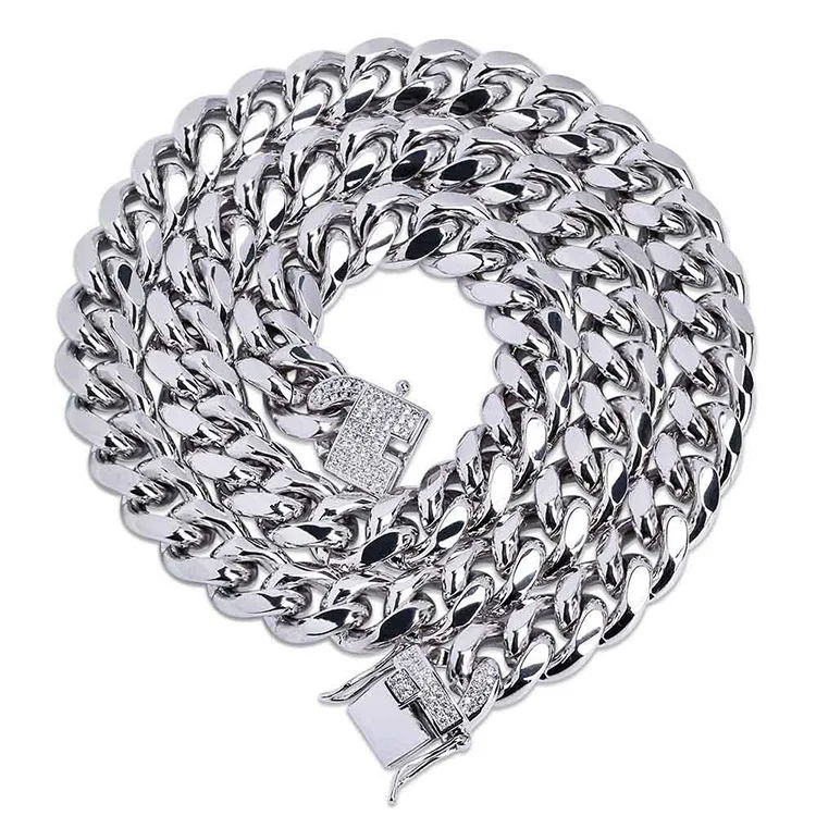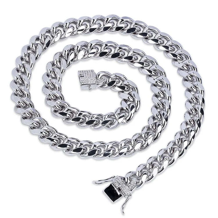 เครื่องประดับฮิปฮอปสุดฮอต ทองคำขาว 14 กะรัต ประดับเพชรเล็บเจียรทรงกลม พร้อมสร้อยคิวบันดีไซน์สวยหรู ความใสระดับ VVS