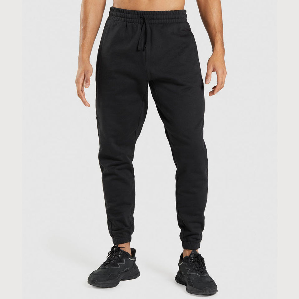 กางเกงจ็อกเกอร์ผู้ชายขายดี ผ้าฟลีซพิมพ์ลาย 100% ผ้าฝ้าย รับผลิตแบบ OEM สีพื้น ปรับแต่งได้ ทรงเข้ารูปที่ข้อเท้า กระเป๋าข้างสองข้าง สำหรับออกกำลังกาย