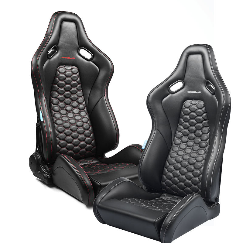 เบาะนั่งรถแข่งแบบสากลรุ่น SSCUS Ace FRP PU ของ OEM ที่ขายดีที่สุด พร้อมการปรับมุมพนักพิงได้กว้าง