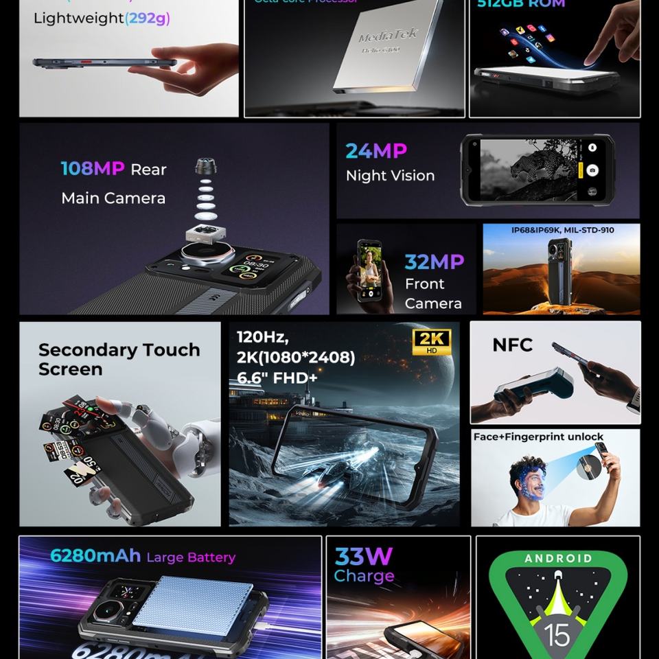 สมาร์ทโฟน Hotwav Rugged Cyber 16 Pro รุ่น 8+512GB กล้องมองกลางคืน หน้าจอ 120Hz FHD ระบบปฏิบัติการ Android 15 แบตเตอรี่ 6280mAh กันน้ำ กันกระแทก มาตรฐาน IP69K