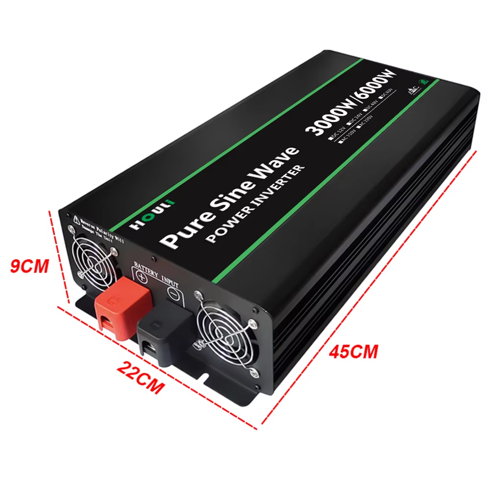 อินเวอร์เตอร์ Houli 6000W คลื่นไซน์บริสุทธิ์ 12V-24V เป็น 120V-230V เฟสเดียว 50/60Hz สำหรับใช้ในบ้านและรถยนต์ ประสิทธิภาพ 90%