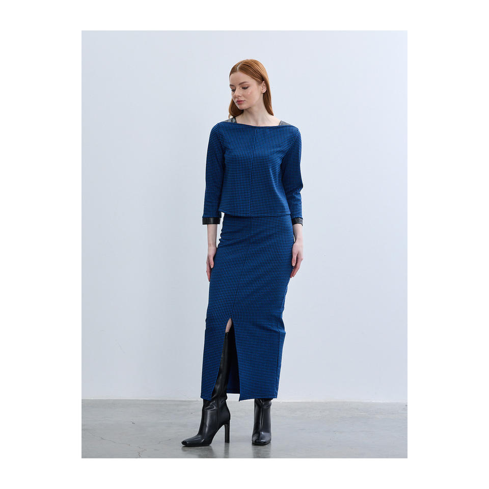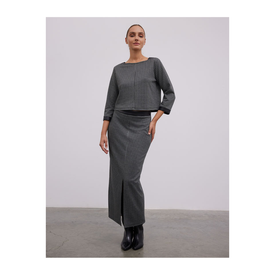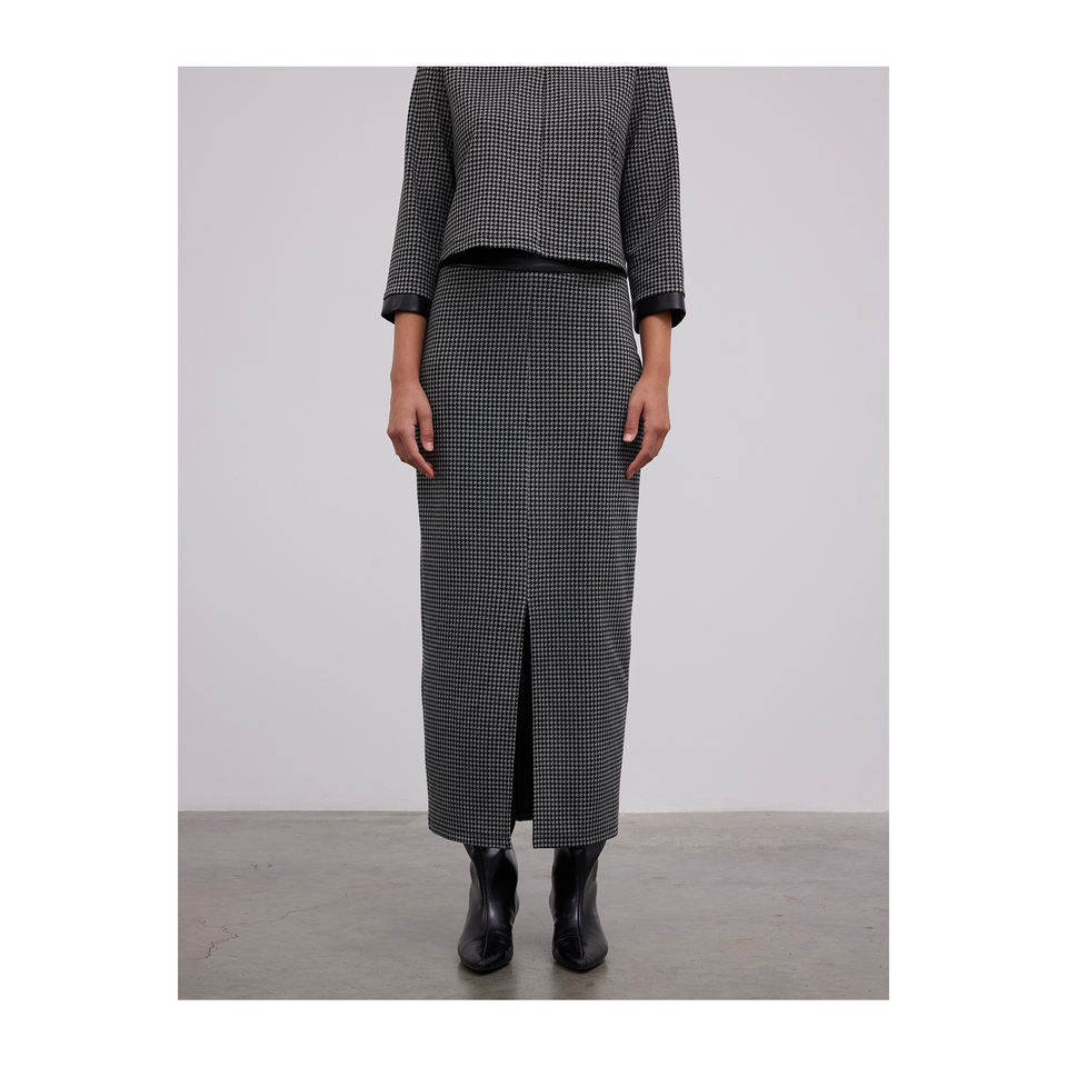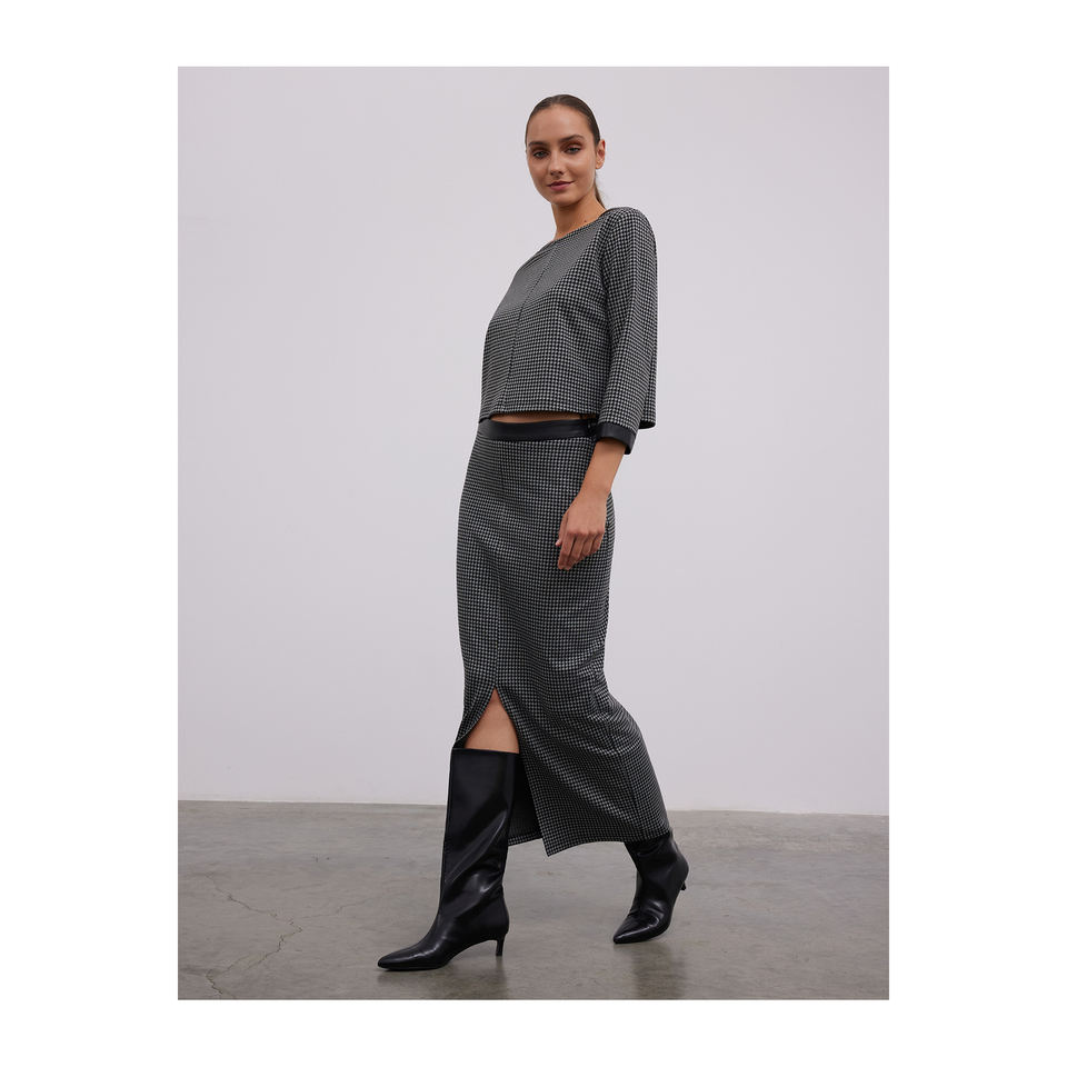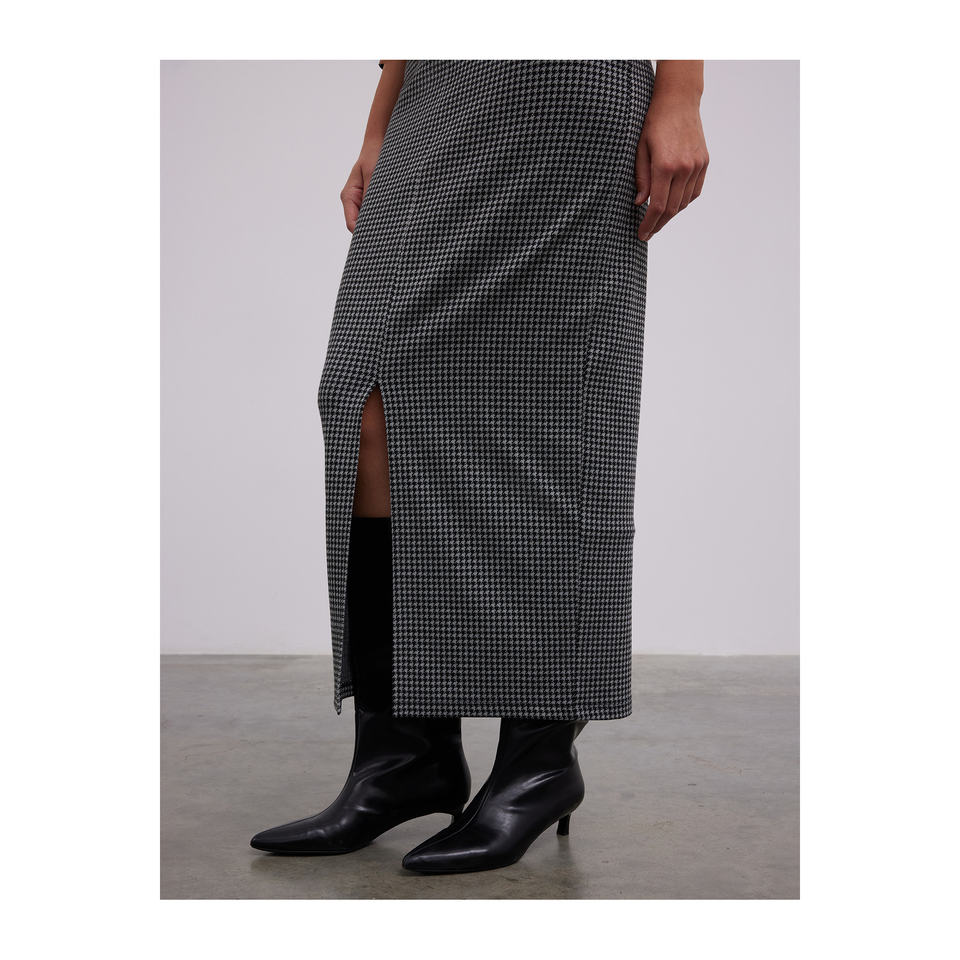 กระโปรงหนังลาย Houndstooth ตัดขอบกระโปรง Midi รัดรูปมีร่อง