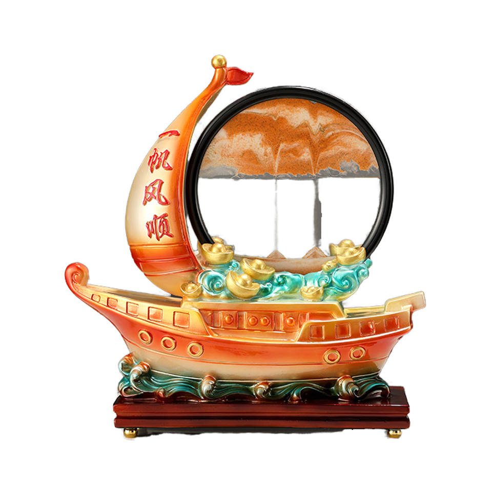 นาฬิกาทรายรูปปั้นศิลปะพื้นบ้านเรซิ่นอีพ็อกซี่เรือใบเรียบใหม่ของตกแต่งตู้ไวน์สำนักงานจีนที่ดี