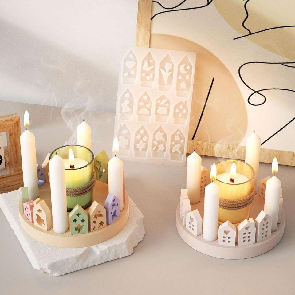 แม่พิมพ์ซิลิโคนยิปซั่มรูปบ้าน ตะเกียง รัก ใบไม้ นก ชุดบ้าน