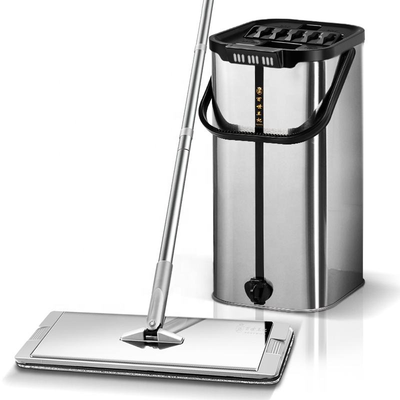 ไม้ถูพื้นไมโครไฟเบอร์เหล็กสำหรับทำความสะอาดบ้าน พร้อมที่บิดน้ำในตัวและด้ามจับยืดหดได้ โดย BEST WIFE