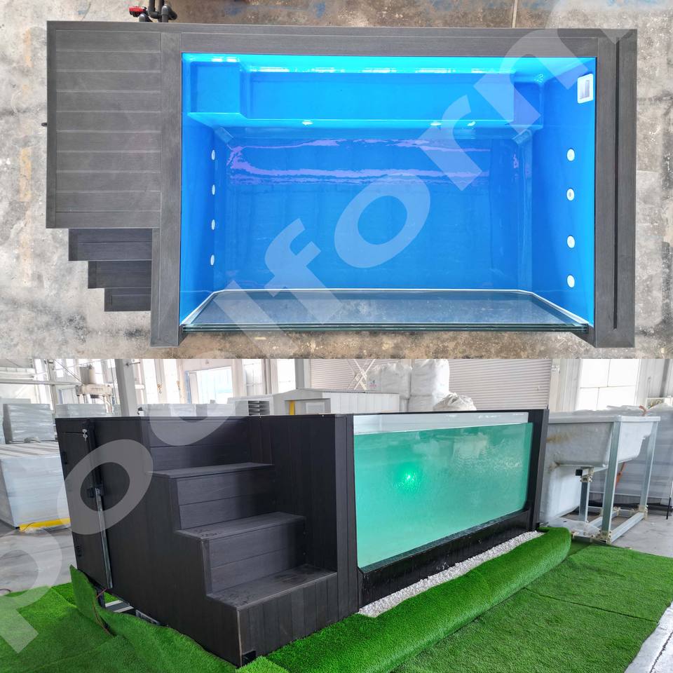 สระว่ายน้ำทำจากไฟเบอร์กลาสพื้นทำจากไม้อะคริลิคประดับผนังบ้านสำหรับครอบครัว