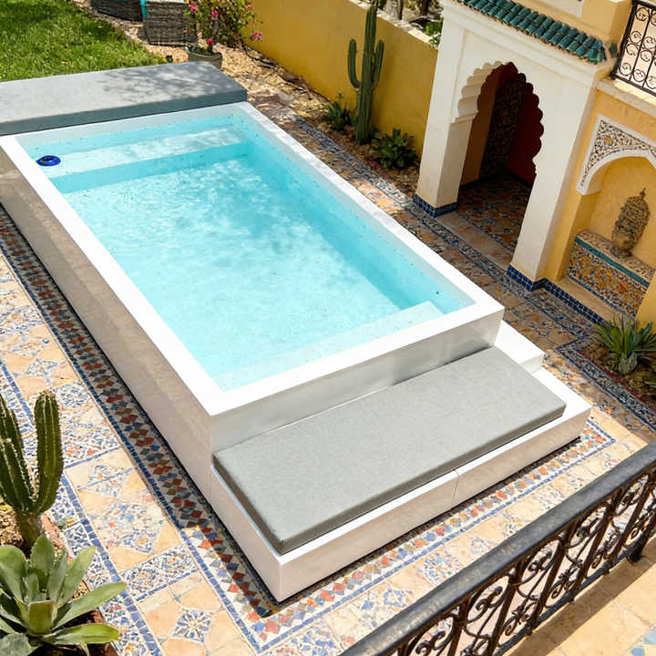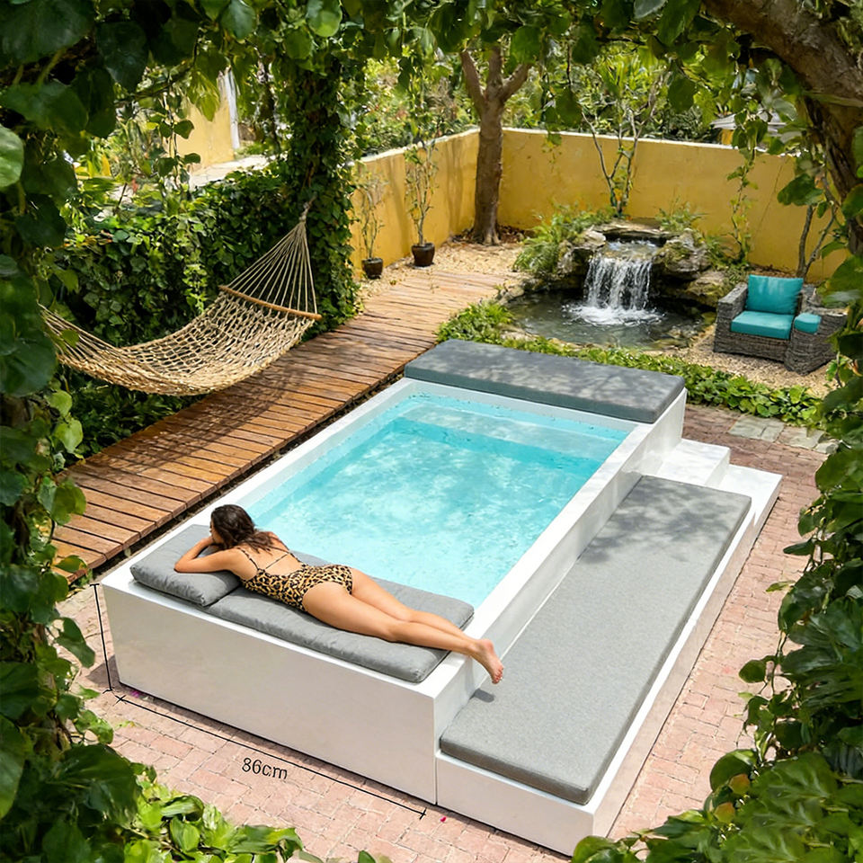 สระว่ายน้ำแบบพกพาพร้อมอุปกรณ์ครบครัน ดีไซน์เรียบหรูมินิมอล วัสดุคุณภาพสูง ขนาดสั่งทำได้ ผลิตจากไฟเบอร์กลาส