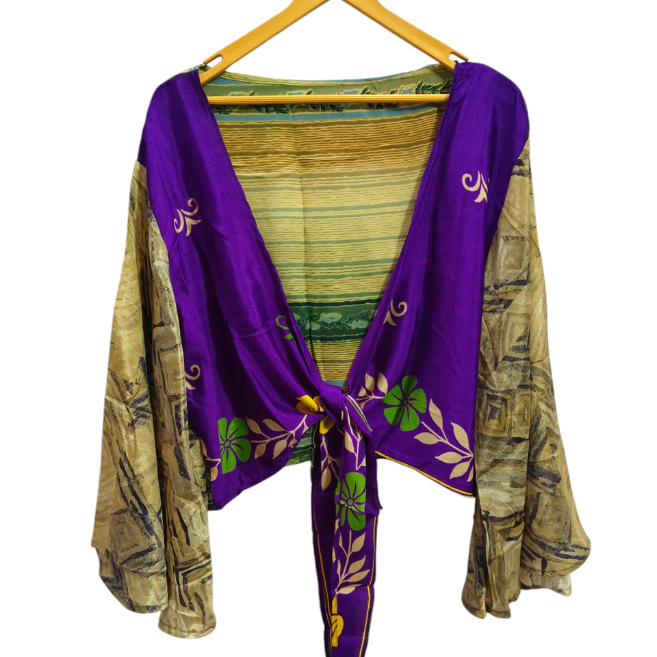 เสื้อผูกเน็คไทผ้าไหมด้านบนทำด้วยมือของชาวอินเดียเสื้อผูกด้านหน้าแบบฮิปปี้เสื้อฤดูร้อนผูกพันรอบเสื้อคลุมผ้าไหมเสื้อครอปฤดูร้อน