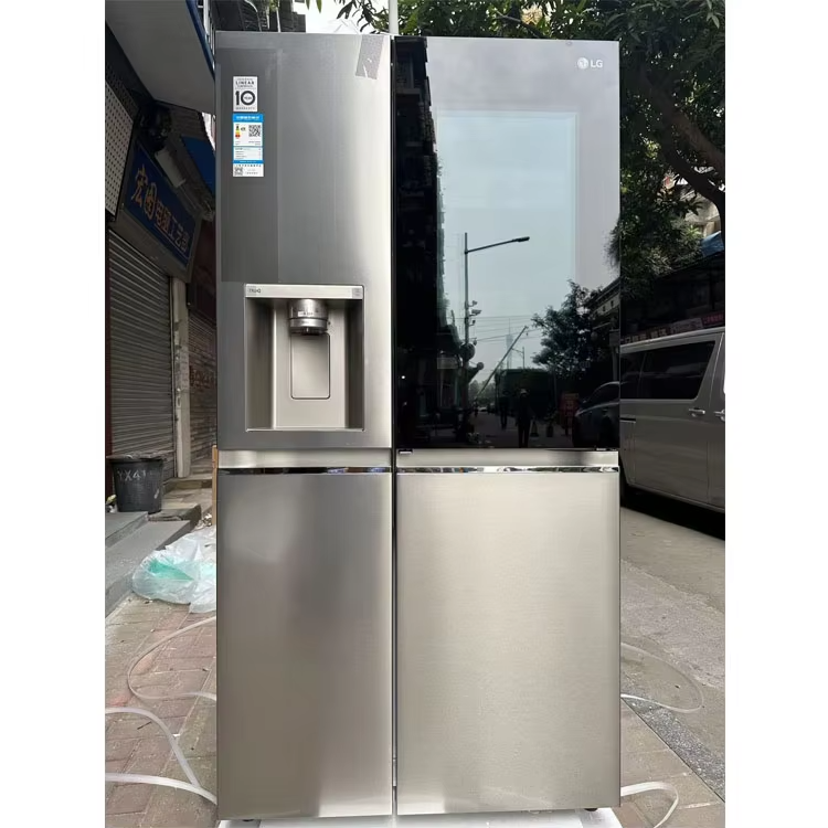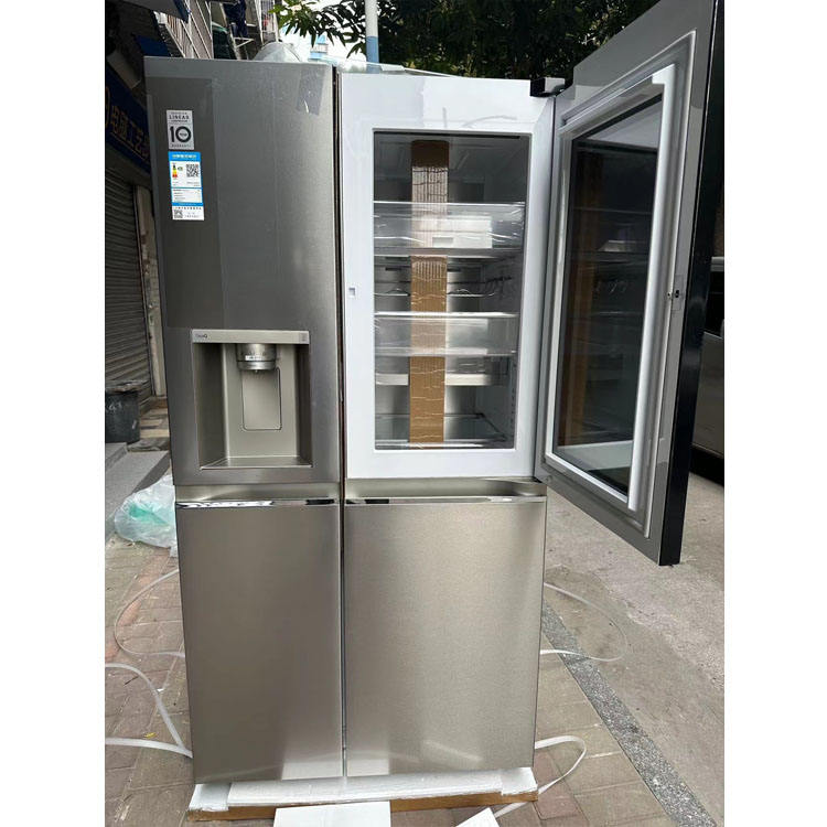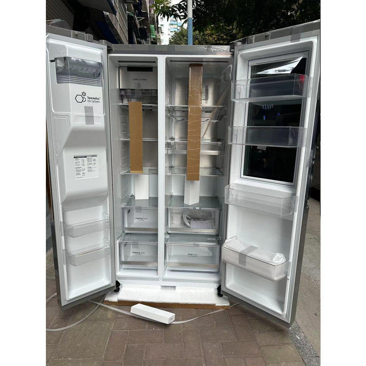 ตู้เย็นติดหน้าต่างพรีเมี่ยมแบบประตูฝรั่งเศส635l ในครัวเรือนดีไซน์ที่ชัดเจนประหยัดพลังงานอินเวอร์เตอร์แบบเคียงข้างกันขนาดใหญ่