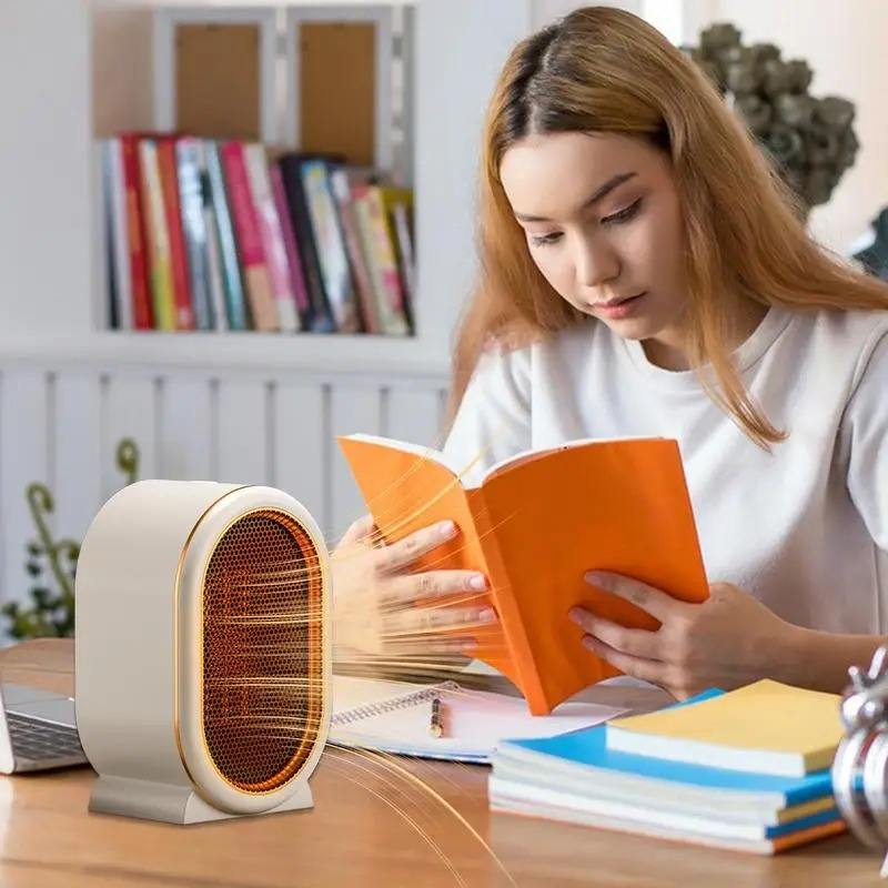 เครื่องทำความร้อนไฟฟ้าแบบตั้งโต๊ะ PTC สำหรับใช้ในบ้าน สำนักงาน ห้องนอน พกพาสะดวก ให้ความอบอุ่นเงียบ ป้องกันความร้อนเกิน พร้อมพัดลมเป่าลมร้อน