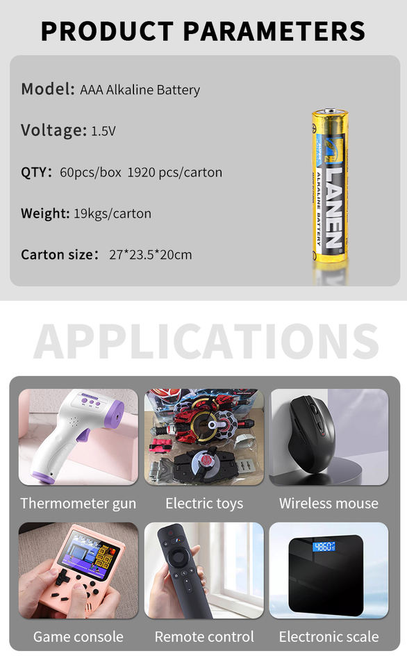 ชื่อผลิตภัณฑ์:ถ่านอัลคาไลน์ AAA 1.5V LR03