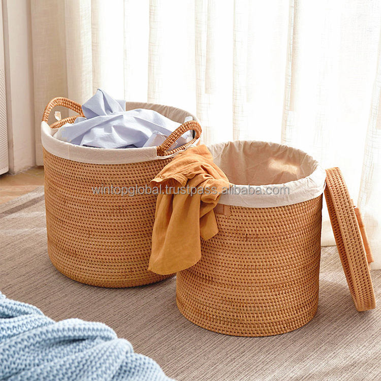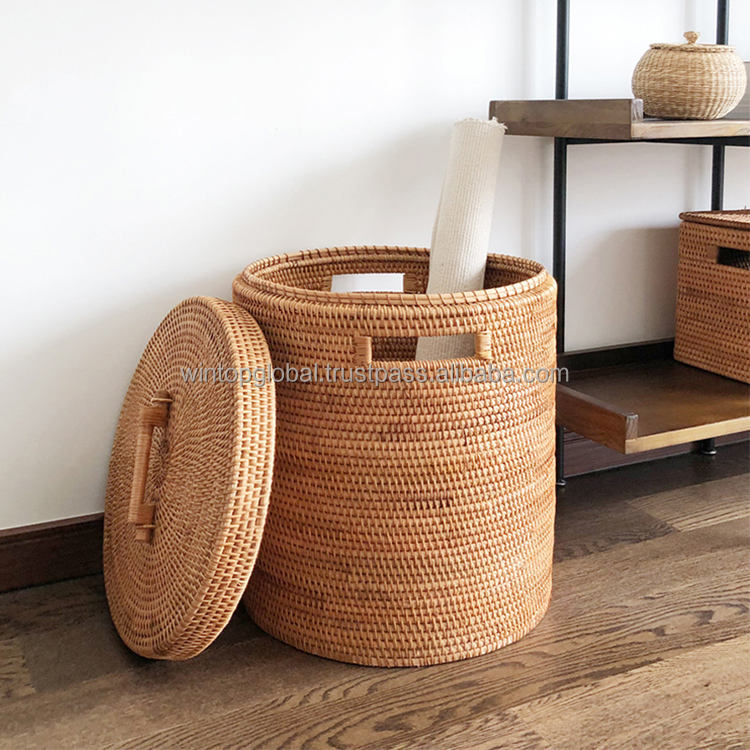 ตะกร้าเก็บของอเนกประสงค์ทรงรี วัสดุหวายน้ำ ยี่ห้อ WINTOP สไตล์โบโฮ หรูหรา เป็นมิตรกับสิ่งแวดล้อม ใช้เป็นถังขยะได้