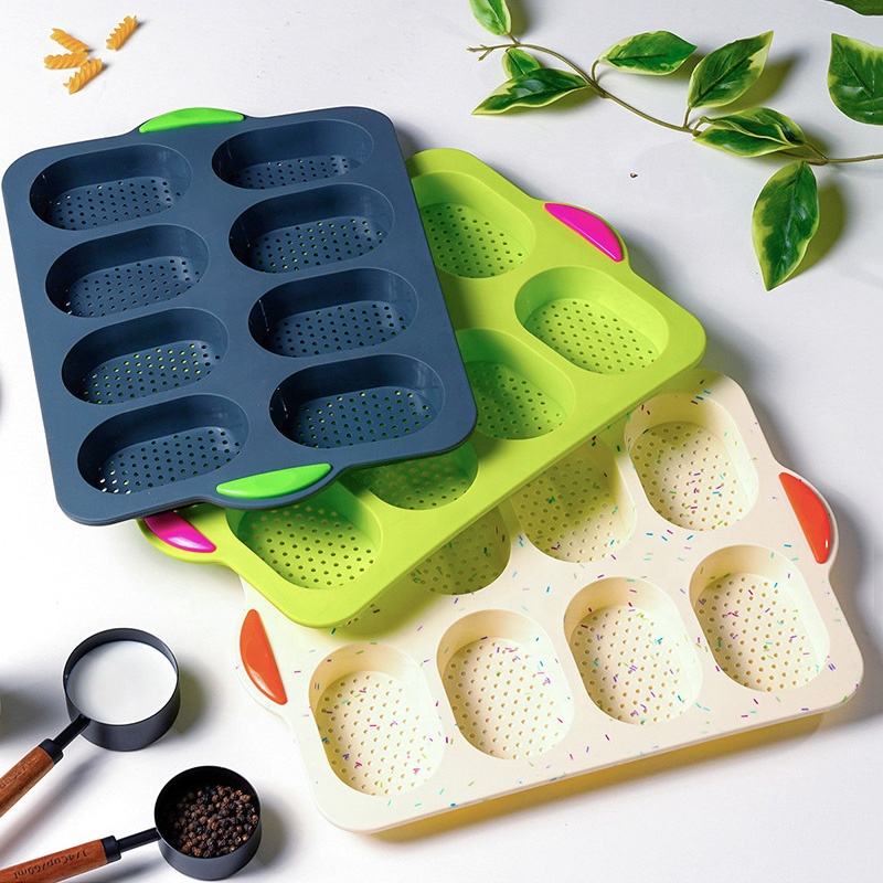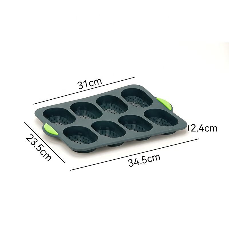 แม่พิมพ์อบขนมปังซิลิโคนเกรดอาหารสำหรับใช้ในครัวเรือน ทนความร้อน 8 ช่อง แม่พิมพ์ขนมปังฝรั่งเศส บาแกตต์ และเค้ก