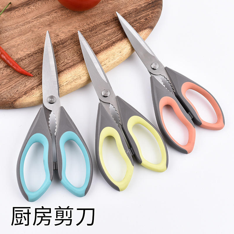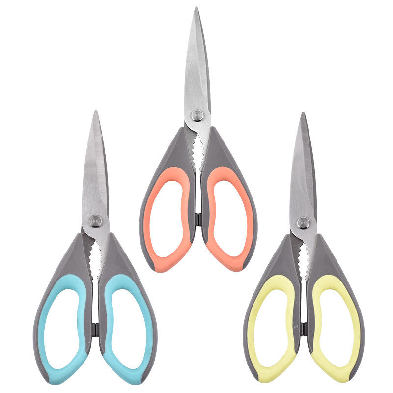 กรรไกรครัวในครัวเรือน สแตนเลสสตีล ทนทาน สีฟ้า สีเหลือง สีส้ม อเนกประสงค์ สำหรับใช้กับอาหารและงานฝีมือ