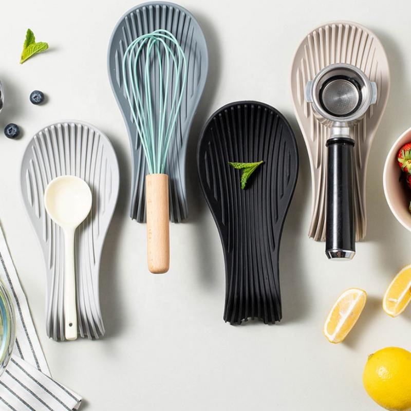 แผ่นรองช้อนซิลิโคนกันลื่นสำหรับใช้ในครัวเรือน แผ่นรองช้อนซุปซิลิโคน ถาดรองตะหลิวซิลิโคน ที่วางช้อนซิลิโคนกันความร้อน
