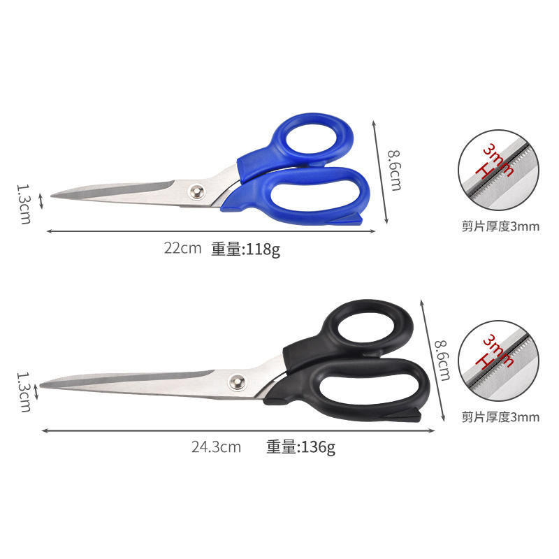กรรไกรสำนักงานในครัวเรือน 22 ซม. 24 ซม. ด้ามจับพลาสติกอเนกประสงค์ ตัดกระดาษ ตัดเย็บ งานฝีมือ