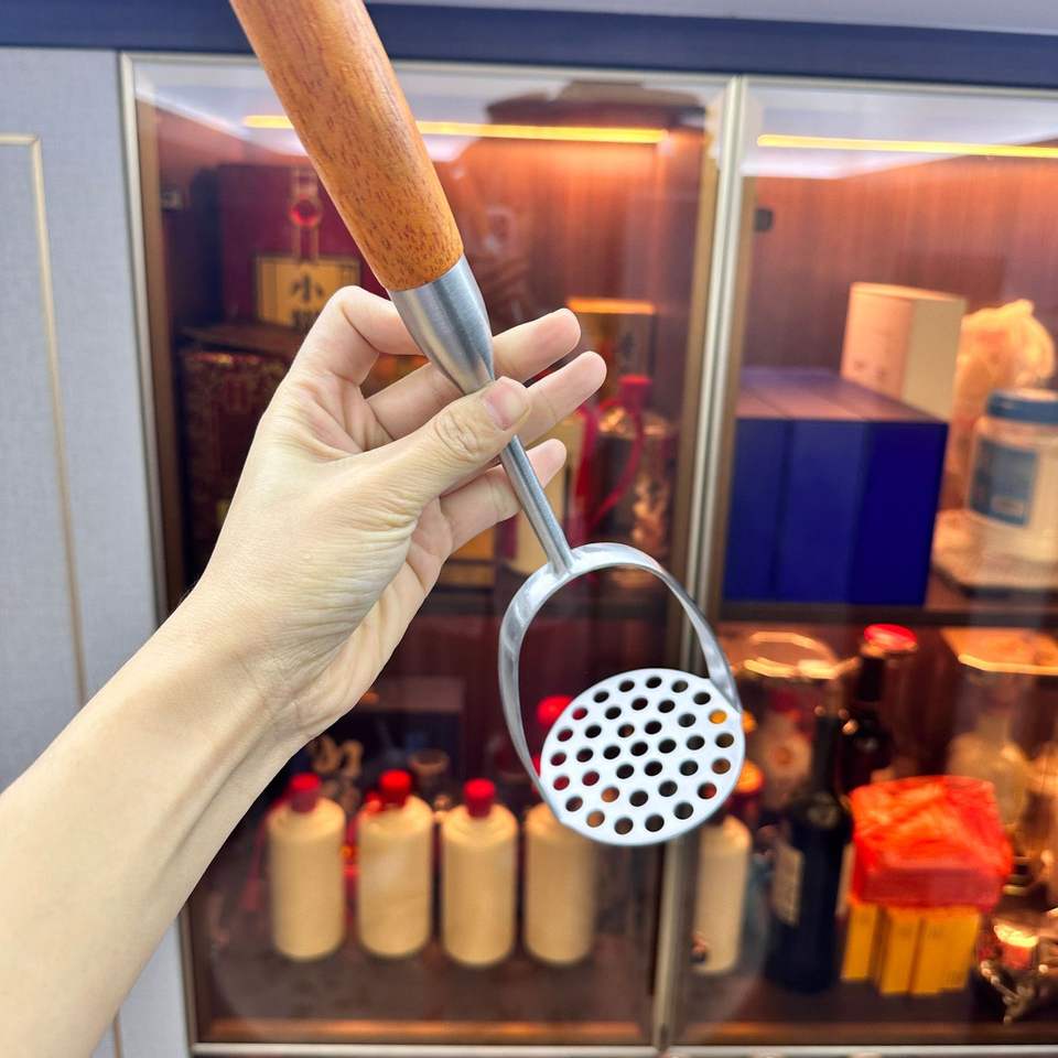 เครื่องบดมันฝรั่งในครัวเรือนพร้อมด้ามจับไม้ เครื่องบดอาหารแบบแมนนวลอเนกประสงค์สำหรับบดละเอียดสำหรับเด็ก บดฟักทอง มันเทศ