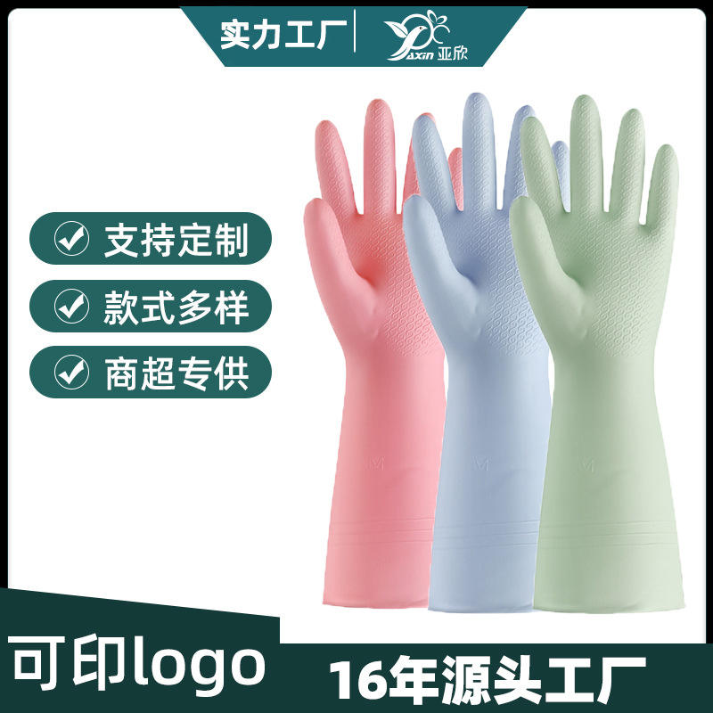 ถุงมือยางสำหรับใช้ในครัวเรือน 32 ซม. กันน้ำ สีทึบ สำหรับล้างจาน ทำความสะอาด ซักผ้า สำหรับใช้ในบ้าน