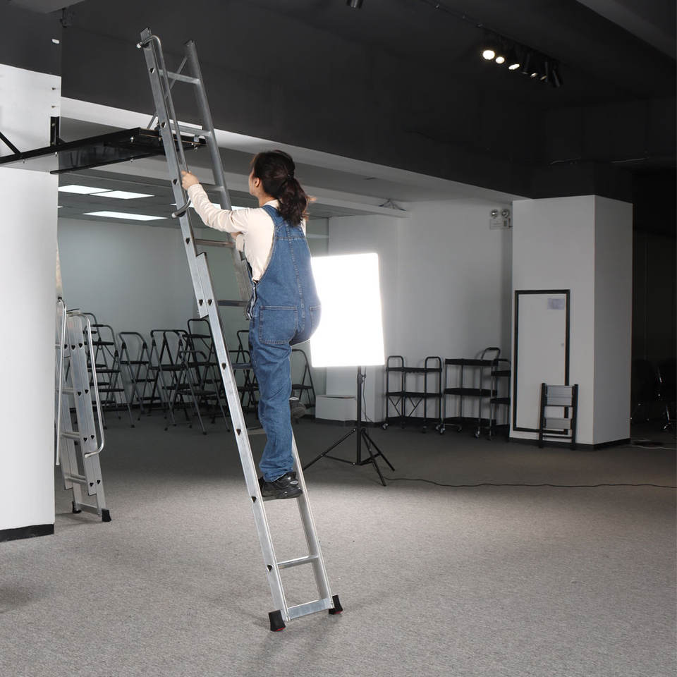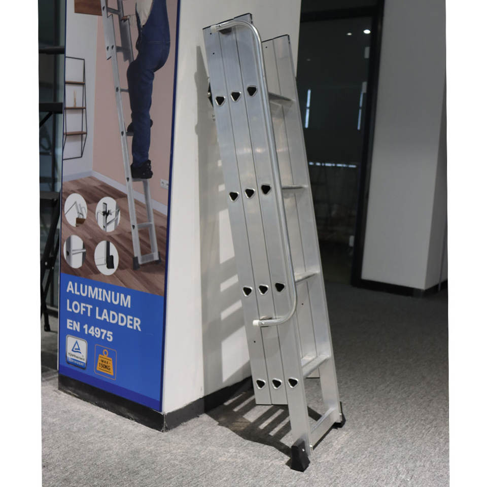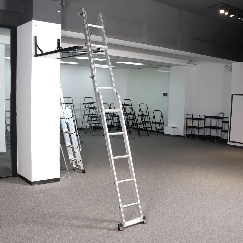 บันไดพับเก็บได้สำหรับห้องใต้หลังคา น้ำหนักเบา แข็งแรง ทนทาน ทำจากอลูมิเนียม พร้อมราวจับ