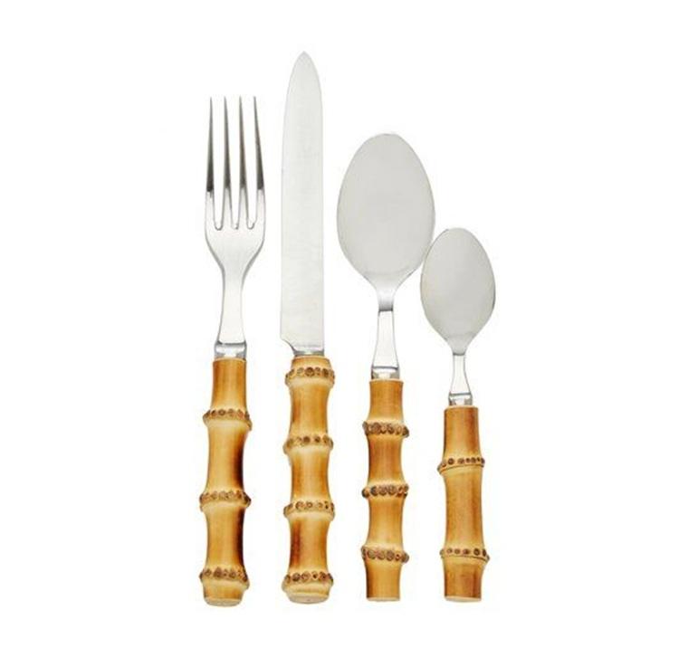 Household Stainless Steel Cutlery Set With Bamboo Handles Reusable Very Eco Friendly No.1 Quality Flatware Set in Japanese Style