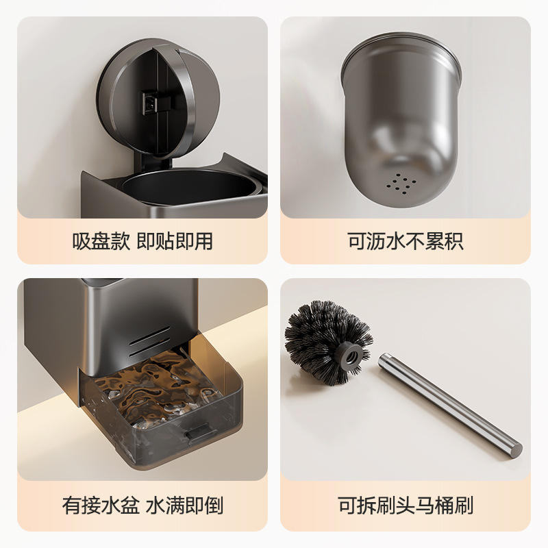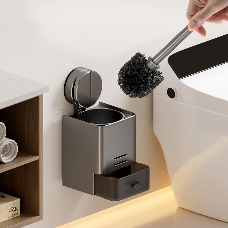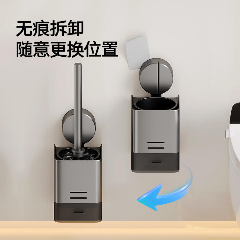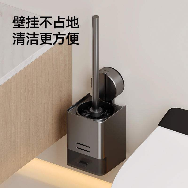 ที่ใส่แปรงขัดห้องน้ำในครัวเรือนพร้อมถ้วยดูดอะลูมิเนียมติดผนังไม่ต้องเจาะรูทรงสี่เหลี่ยมเรียบง่ายทำความสะอาดง่าย