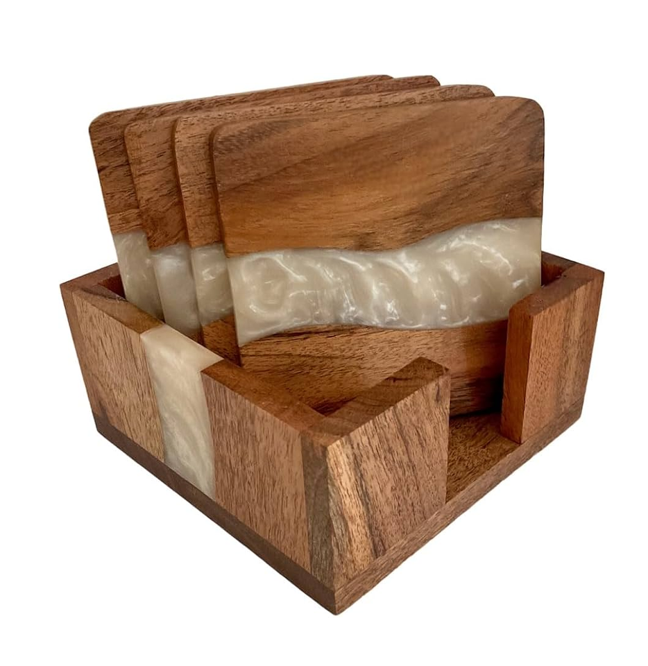 ที่รองแก้วไม้และเรซินอีพ็อกซี่ของขวัญขึ้นบ้านใหม่ที่รองแก้วของขวัญคริสต์มาสสไตล์ทันสมัยงานฝีมือตามธรรมชาติ