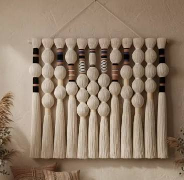 ของขวัญขึ้นบ้านใหม่ ผ้าแขวนผนังลายคลื่นแบบมาคราเม่ ของตกแต่งผนัง งานศิลปะตกแต่งบ้าน สำหรับห้องนั่งเล่น