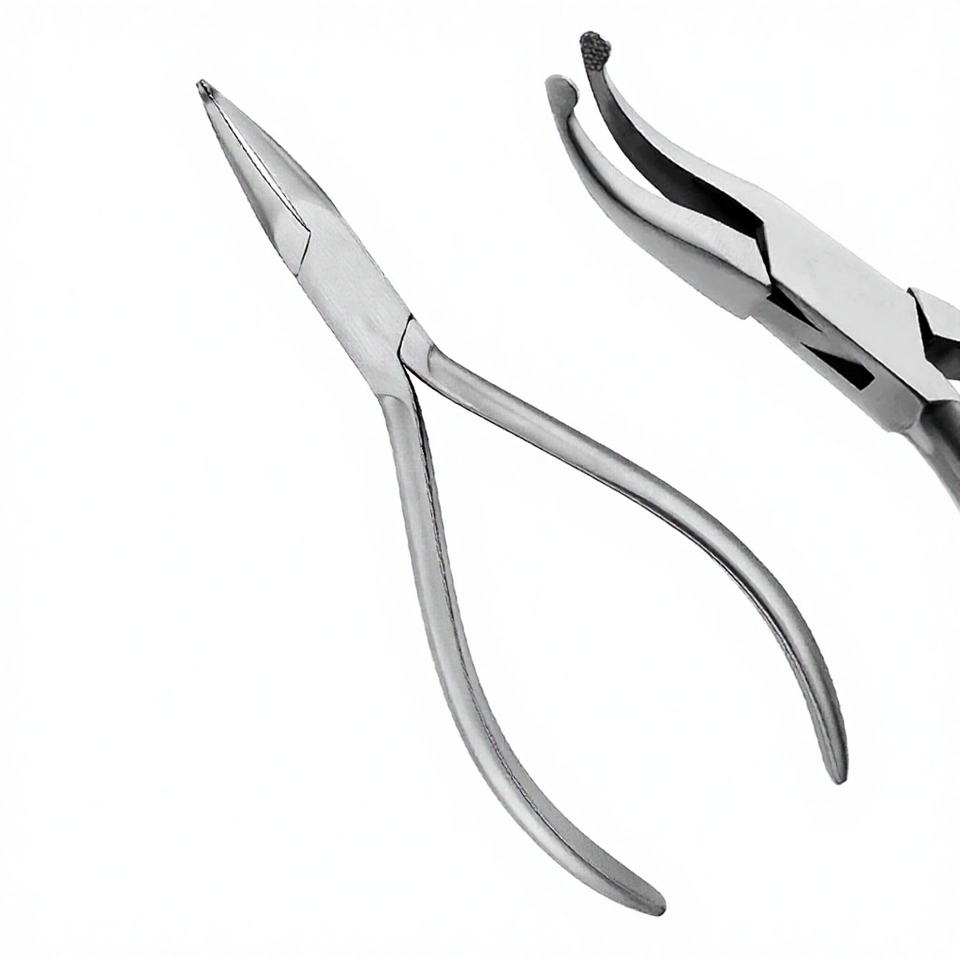 คีมจัดฟันแบบตรงและโค้ง ยี่ห้อ Crown Manual ขนาด 14 ซม. คุณภาพสูง ผลิตจากสแตนเลสสตีล ปลายหยัก สำหรับงานทันตกรรม คลาส II