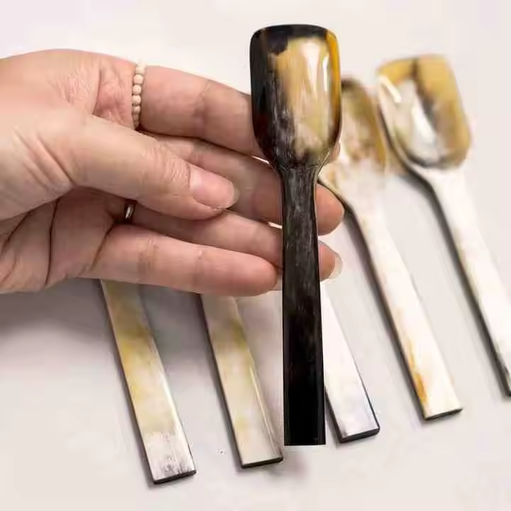 คู่มืองานฝีมือเสี้ยวทำช้อนแตรด้ามสั้นขัดกระจกงานฝีมือแบบดั้งเดิมตามธรรมชาติที่หรูหราสำหรับโอกาสในงานปาร์ตี้