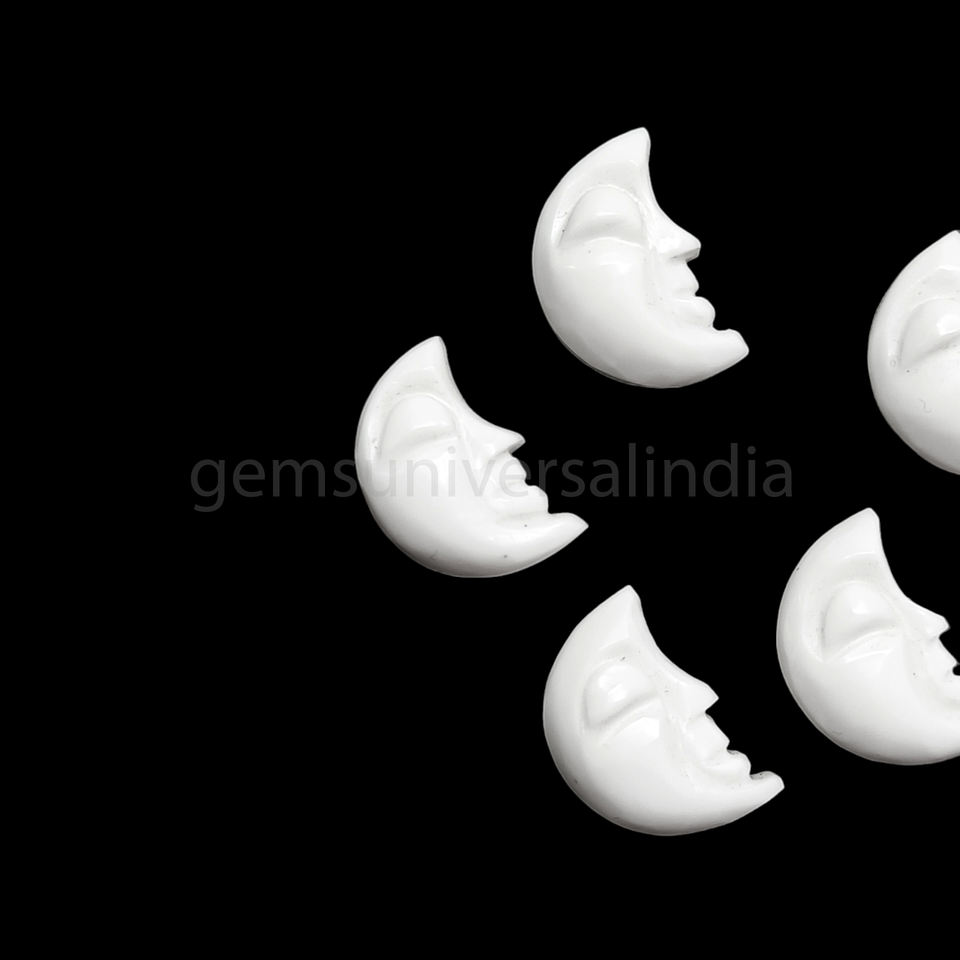 Howlite พลอยดวงจันทร์อัญมณีแกะสลักหน้าดวงจันทร์เสน่ห์สำหรับการทำเครื่องประดับรูปพระจันทร์เสี้ยวแกะสลักพลอยครึ่งดวงจันทร์หน้าแกะสลักทรงหลังเบี้ย