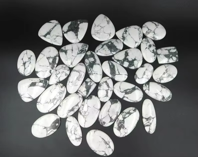 หินโฮไวล์คุณภาพสูง หินโฮไวล์สีขาวธรรมชาติ ทรงหลังเบี้ย ขัดเงา หินพลอยหลวม เหมาะสำหรับทำเครื่องประดับ จำนวนมาก