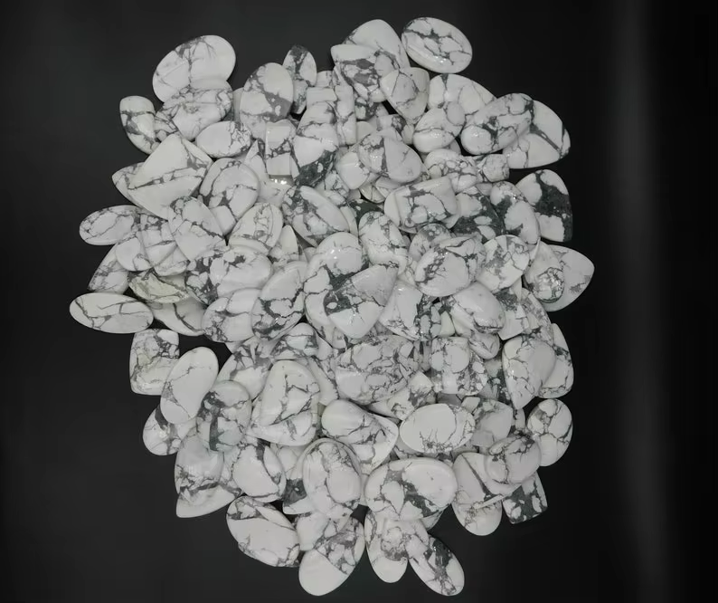 หินโฮไวล์คุณภาพสูง หินโฮไวล์สีขาวธรรมชาติ ทรงหลังเบี้ย ขัดเงา หินพลอยหลวม เหมาะสำหรับทำเครื่องประดับ จำนวนมาก