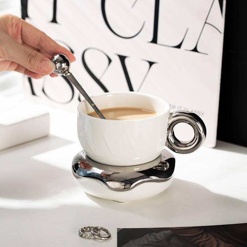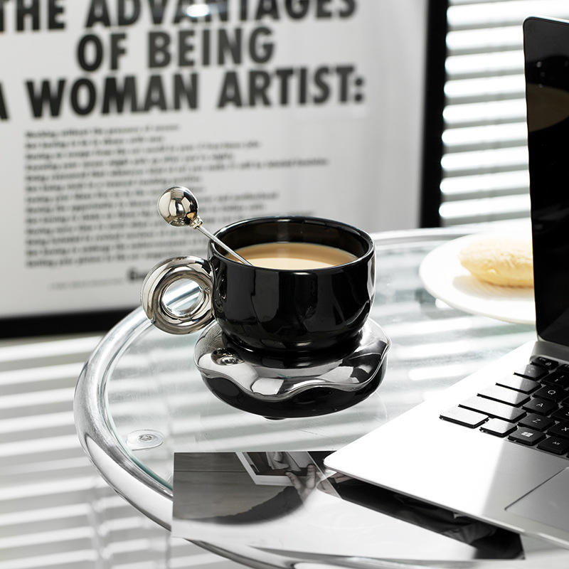 ชุดกาแฟพร้อมจานรอง 1 ชุด 230 มล. ชุบเงิน ดีไซน์สร้างสรรค์ ภาชนะบนโต๊ะอาหารทันสมัย