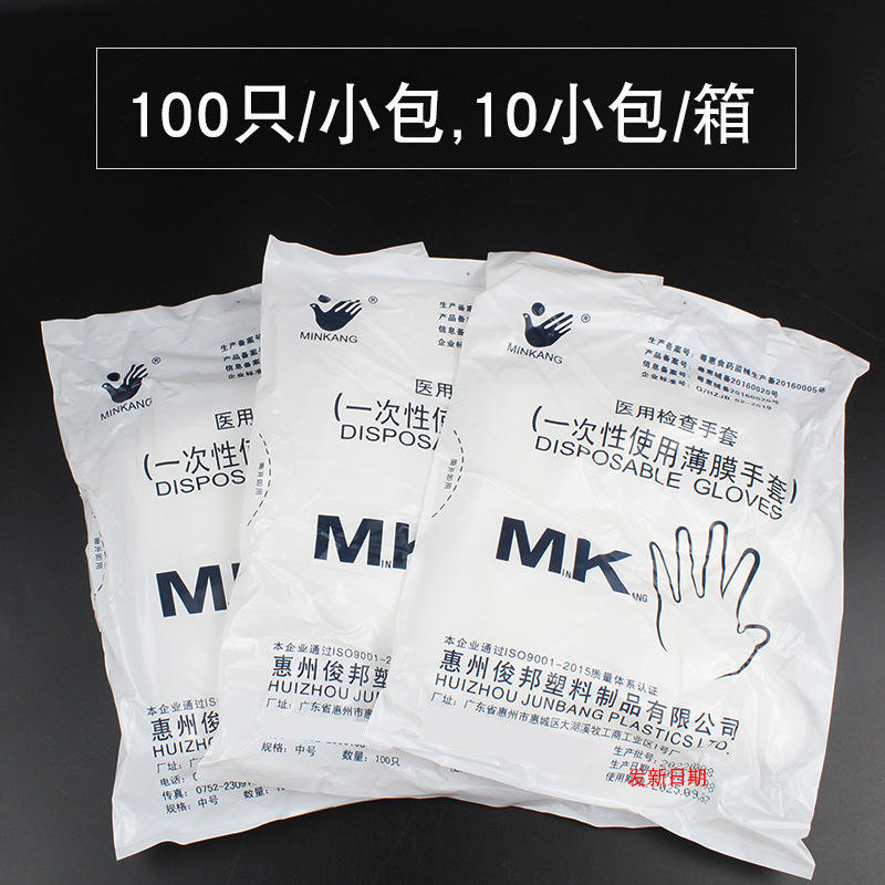 ถุงมือพลาสติกสำหรับตรวจโรค HSK ไซส์ M 1000 ชิ้น สำหรับใช้กับอาหาร ทันตกรรม และเครื่องสำอาง
