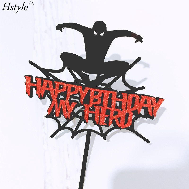 HSTYLE ตกแต่งเค้ก PQ287ธีมซูเปอร์ฮีโร่การตกแต่งเค้กที่ได้รับแรงบันดาลใจจากธีมของซูเปอร์ฮีโร่ของตกแต่งเค้กวันเกิดของมนุษย์แมงมุมท็อปเปอร์ท็อปเปอร์เค้ก