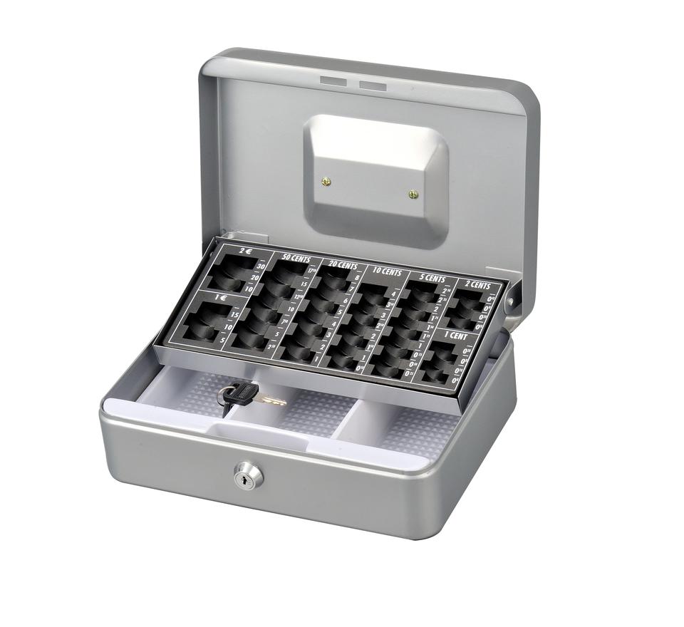 ตู้เซฟเหล็ก Hu-buy พร้อมถาดใส่เหรียญยูโร กล่องเก็บเงินโลหะทรงสี่เหลี่ยมขนาดเล็ก
