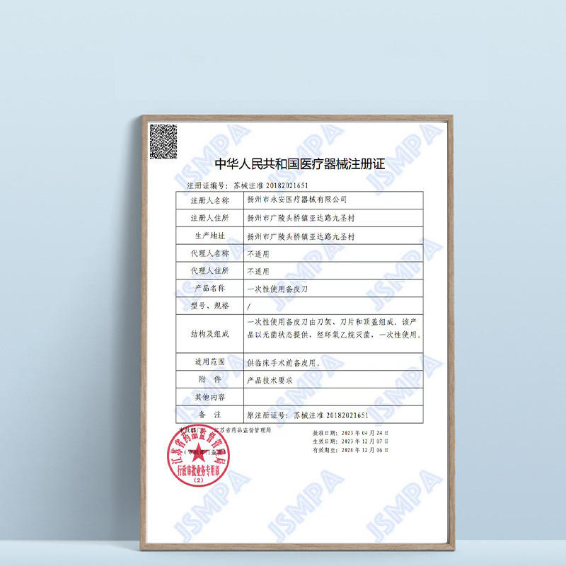 Jiangsu Medical Device Registration Certificate 20182021651