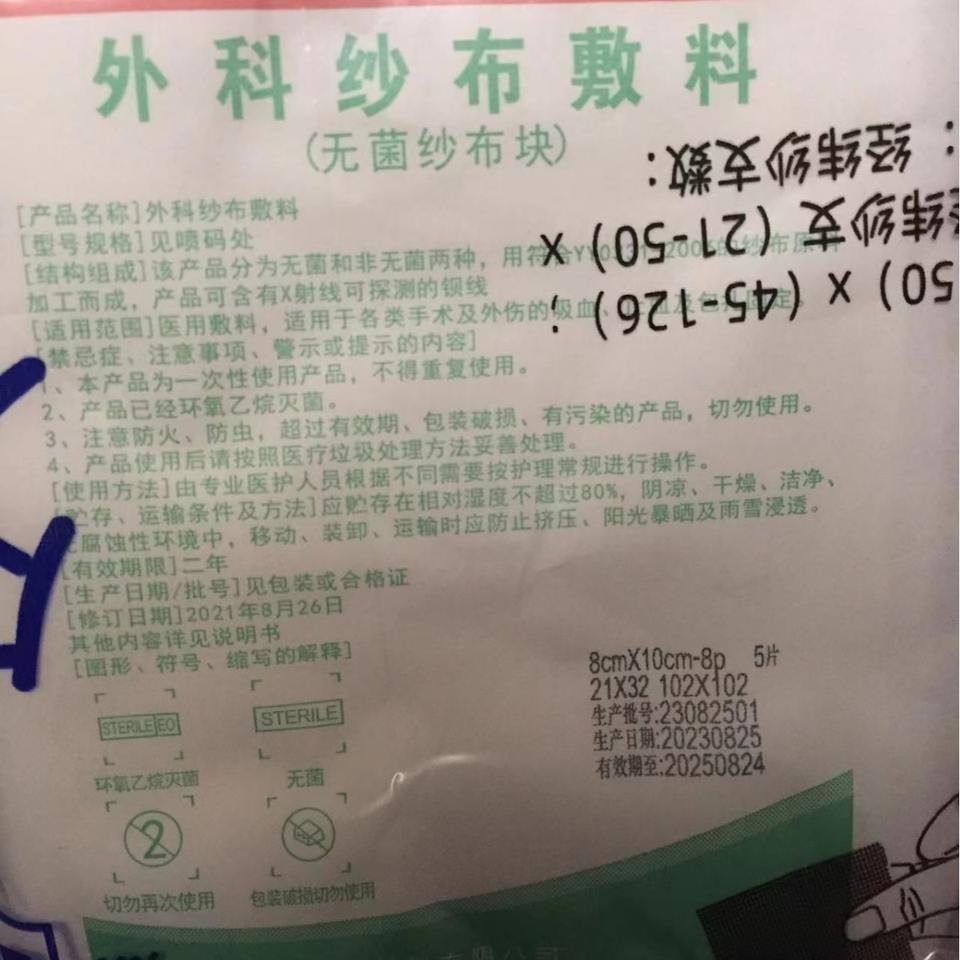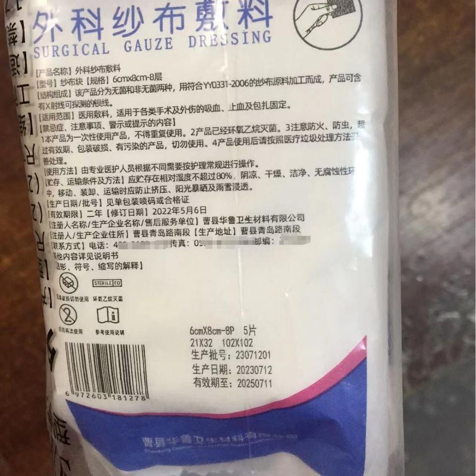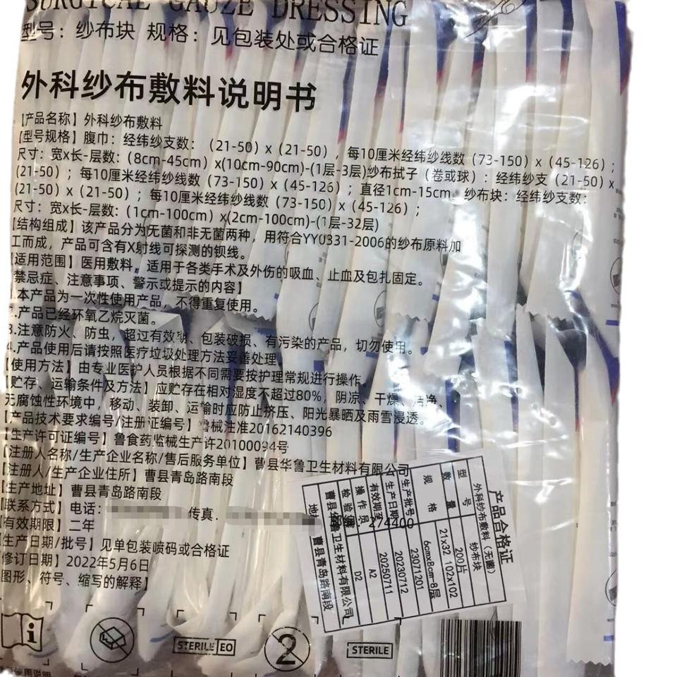ผ้าก๊อซผ่าตัดฮัวลู่ ขนาด 8x10 10x10 6x8 แผ่นปิดแผลปลอดเชื้อแบบใช้ครั้งเดียว ผ้าก๊อซทางการแพทย์