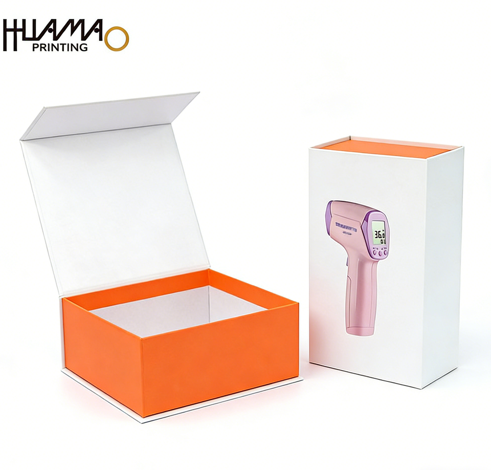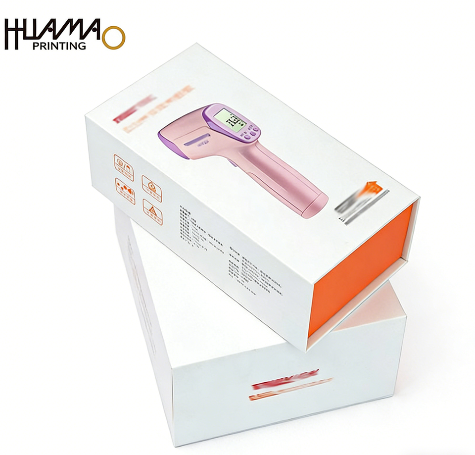 กล่องของขวัญกระดาษแข็ง Huamao สำหรับเครื่องวัดอุณหภูมิหน้าผากแบบอินฟราเรด กล่องของขวัญกระดาษแบบกำหนดขนาดและดีไซน์เองได้