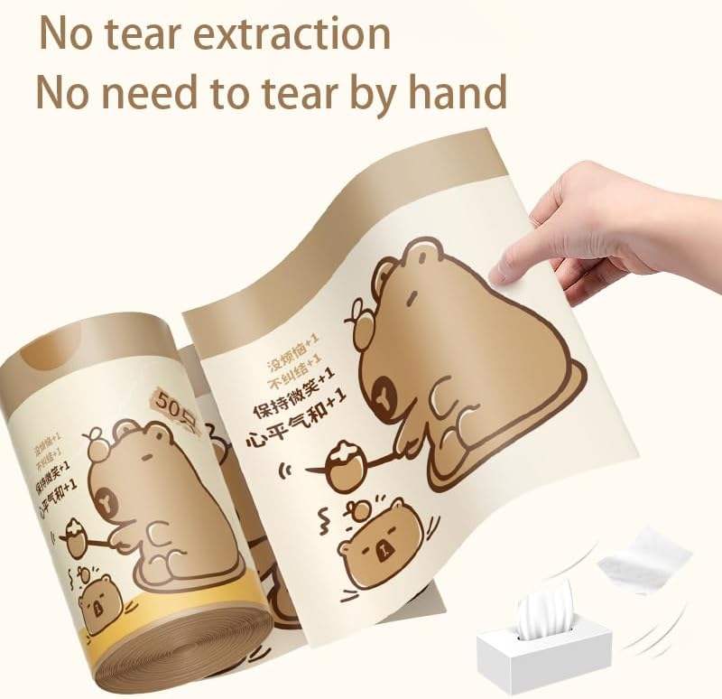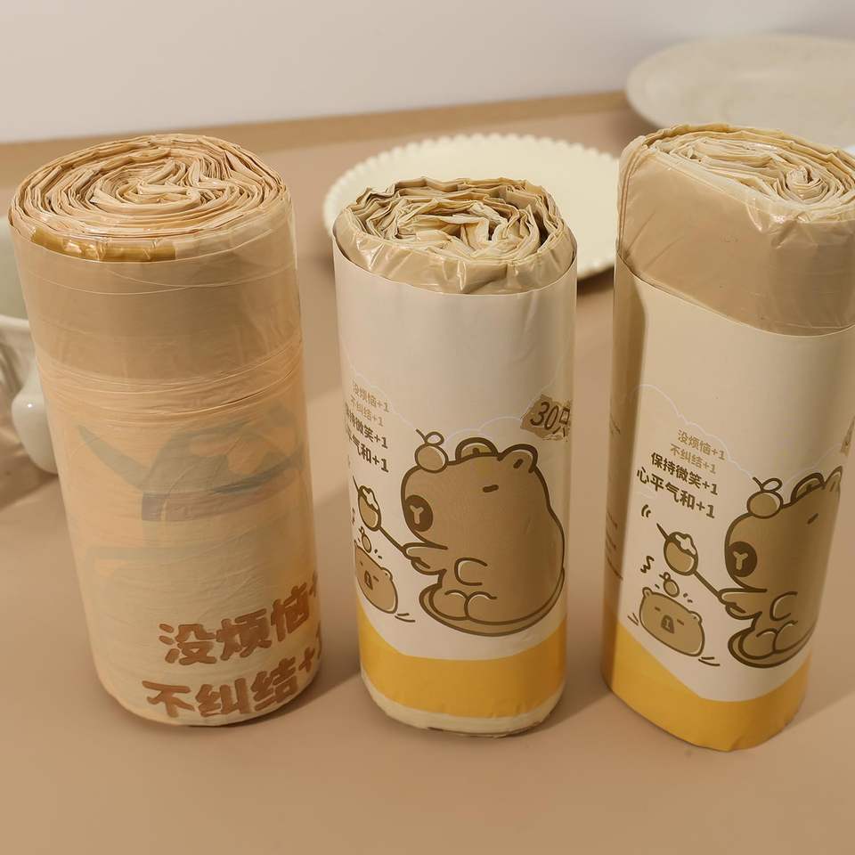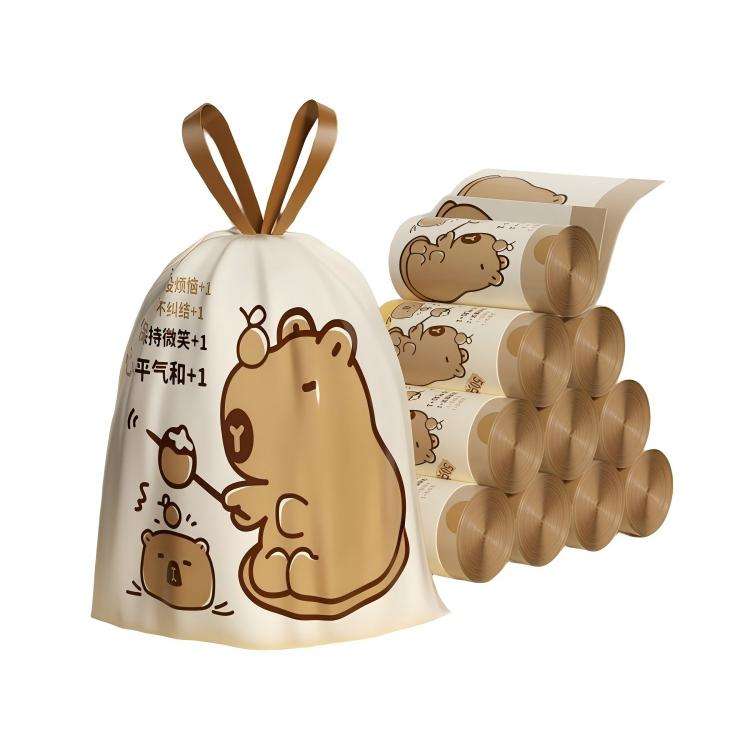 ถุงขยะแบบมีเชือกผูก ลายการ์ตูน ขนาดใหญ่ ความจุเยอะ หนาพิเศษ ยี่ห้อ Huamaohengchun 50 ชิ้น/ม้วน