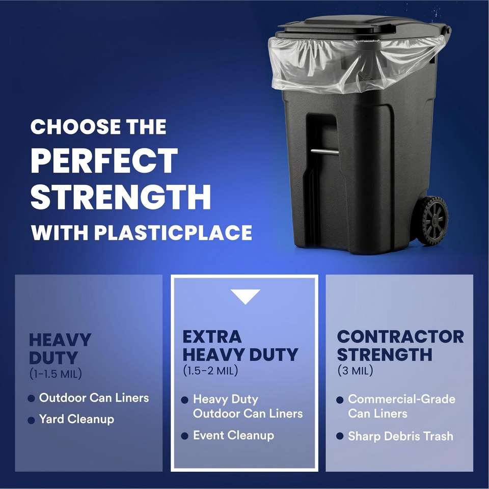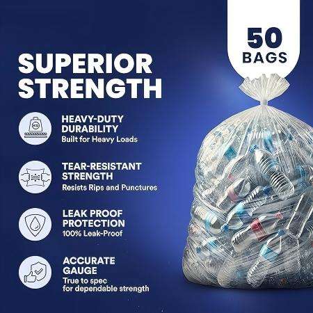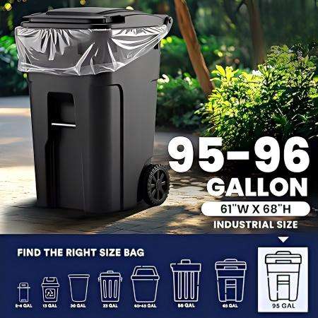 Huamaohengchun95-96 Gallon Garbage Can Liners 2 Mil Clear Heavy Duty Trash Bags 61” x 68”
