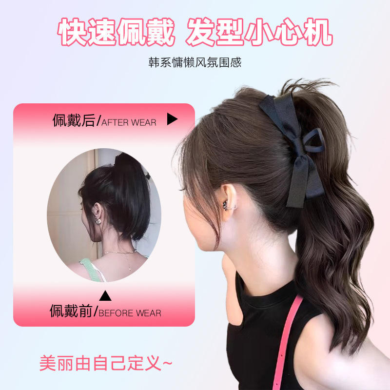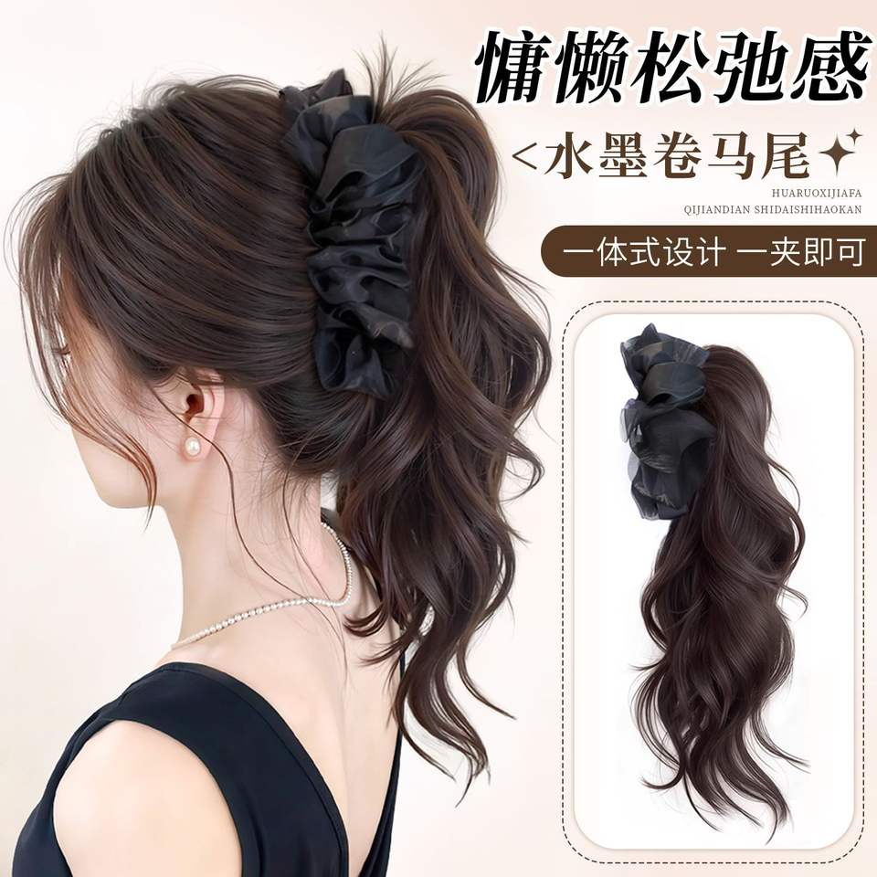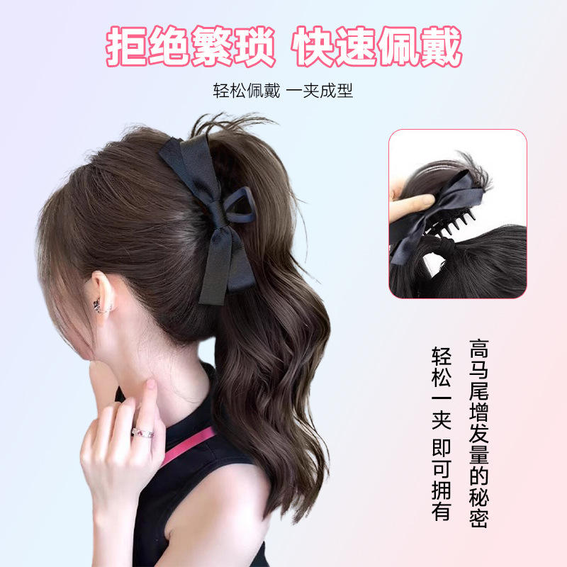 วิกผมหางม้าแบบหนีบ ทนความร้อนสูง แบบฟูหยิก สำหรับผู้หญิง วัสดุโพลีเอสเตอร์