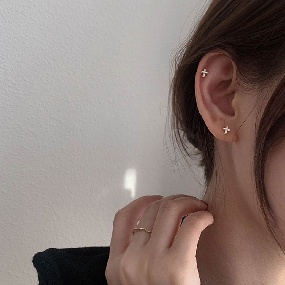 แฟชั่น Huashan ชุบทองสแตนเลสผู้หญิงต่างหูเพทายข้ามชายแดนเรียบง่ายเครื่องประดับน่ารัก