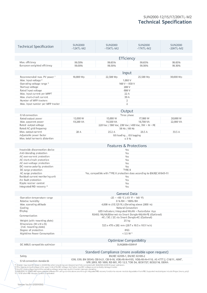 SUN2000-12/15/17/20KTL-M2หมายเลขรุ่น