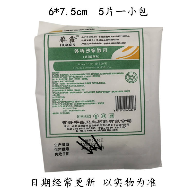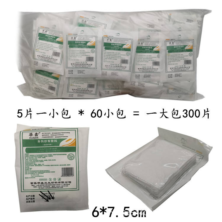 ผ้าก๊อซฆ่าเชื้อหัวซิน ขนาด 6x7.5 ซม. บรรจุแยกชิ้น 300 ชิ้นต่อแพ็ค สำหรับปิดแผล ทำจากฝ้ายบริสุทธิ์